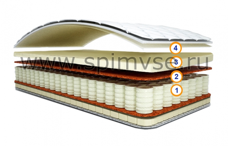 2. Кокосовое волокно, пропитанное латексоподобным составом. Связка пружины+кокос определяют жесткость основы матраса как средне-высокую.