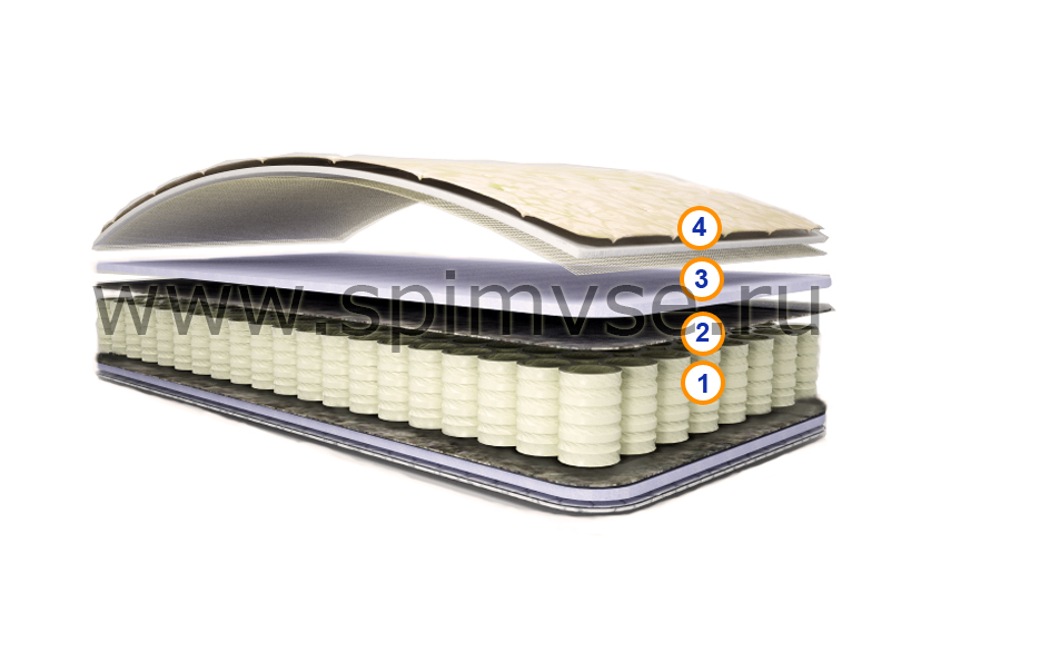 1. Пружинный блок Pocket Spring (он же TFK, он же S-500, он же пружины карманного типа), плотностью 512 пружин на условное спальное место. *Каждая пружина помещена в отдельный "карман", который по высоте меньше пружины. Регулируя высоту "кармана", можно делать матрасы разной высоты без ущерба для качества.